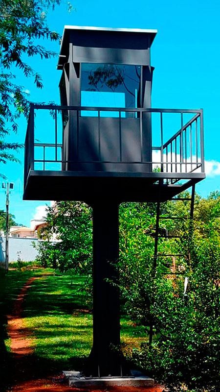 Além de proteção a integridade física do profissional de segurança, a guarita suspensa blindada devido a sua construção baseada na arquitetura militar, gera uma ampla vantagem de visão periférica. Utilizando dessa vantagem, o profissional de segurança está apto a tomar decisões com mais calma e sensatez diminuindo a chance de erro perante situação de risco.